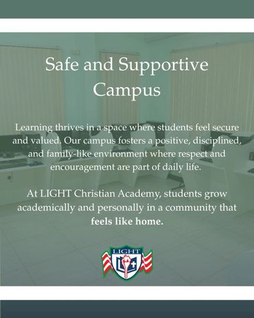 LIGHT is a K–10 educational institution dedicated to honoring God through the lives of its students. Our primary mission is to help students achieve their fullest potential by fostering both Academic Excellence and strong Christian character.